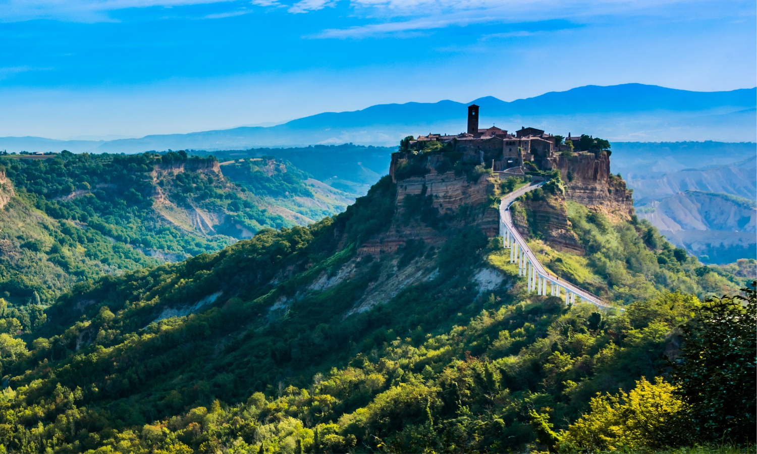 建於2,500年前,孤立於山頂上,唯靠一條狹窄的長橋與外界相連。從遠處看就像一座空中的城堡。如巧遇雲霧未散,古城就像飄浮在半空中,彷如「天空之城」。