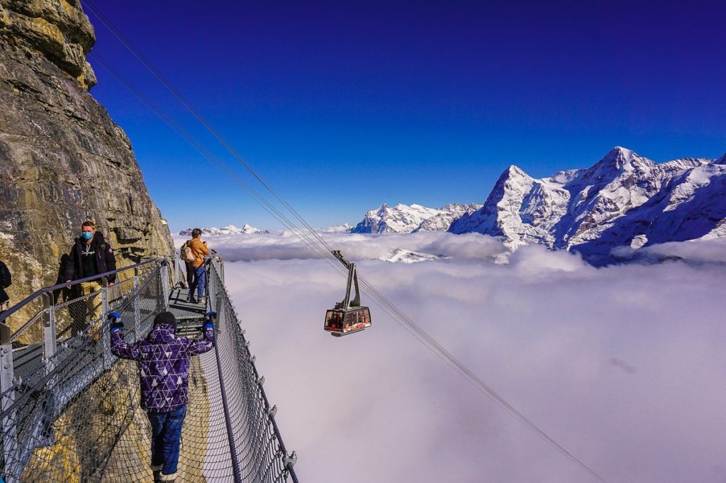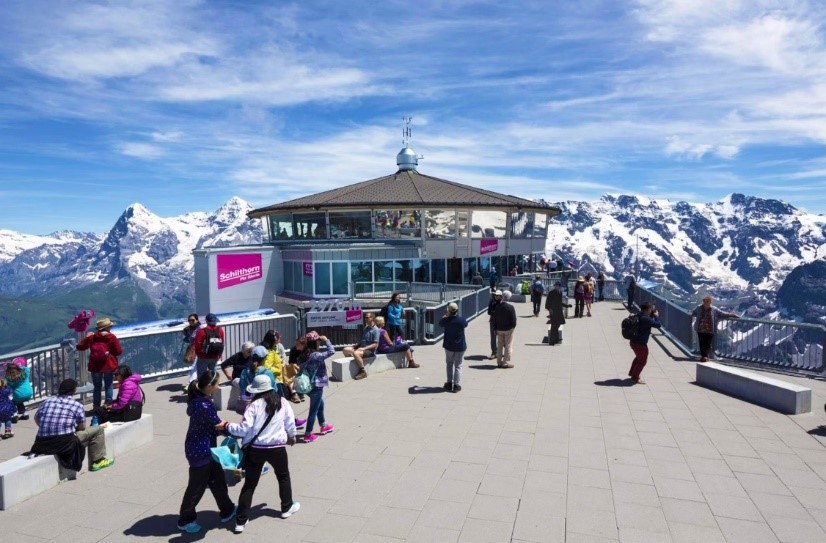 搭乘2025年全新升級纜車,前往海拔2970米,因曾是著名電影007鐵金剛的拍攝地而名聲大噪的雪朗峰。於博格站體驗玻璃觀景平台和一段鐵網架空的高空棧道,一嘗真正無障礙地欣賞腳下與別不同的美景,刺激無比。