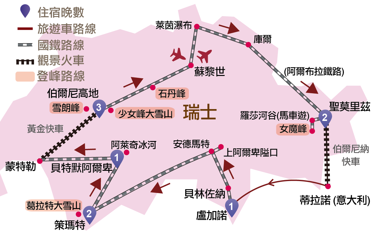 註 :如伯爾尼納快車未能提供團體訂位,將改乘相同路線列車,每位團友退回港幣$300元。