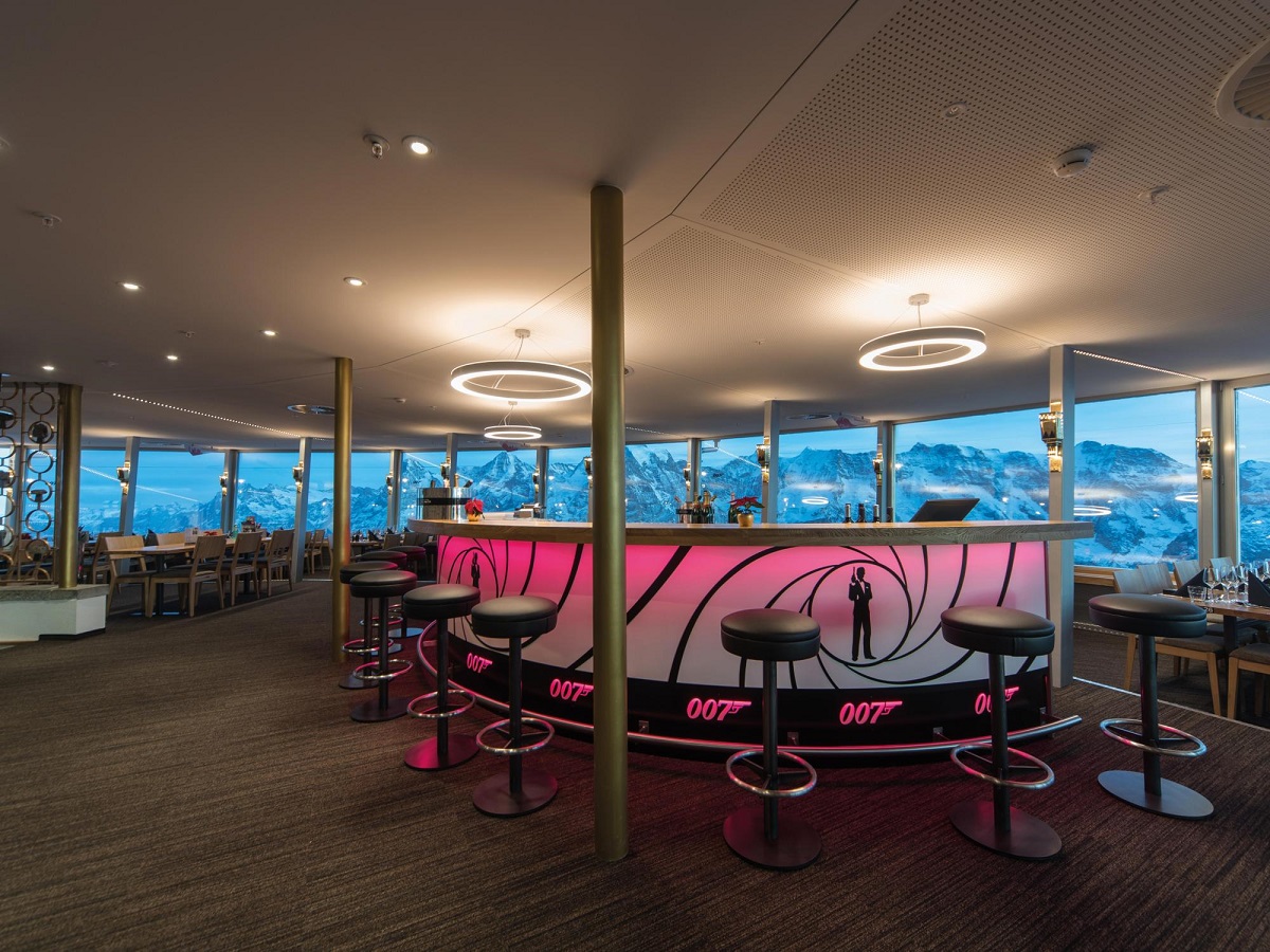 全景觀旋轉餐廳,提供360°全景觀視野,飽覽200座山峰的壯麗景色。貼心安排於「Piz Gloria」享用午餐,美景美食!