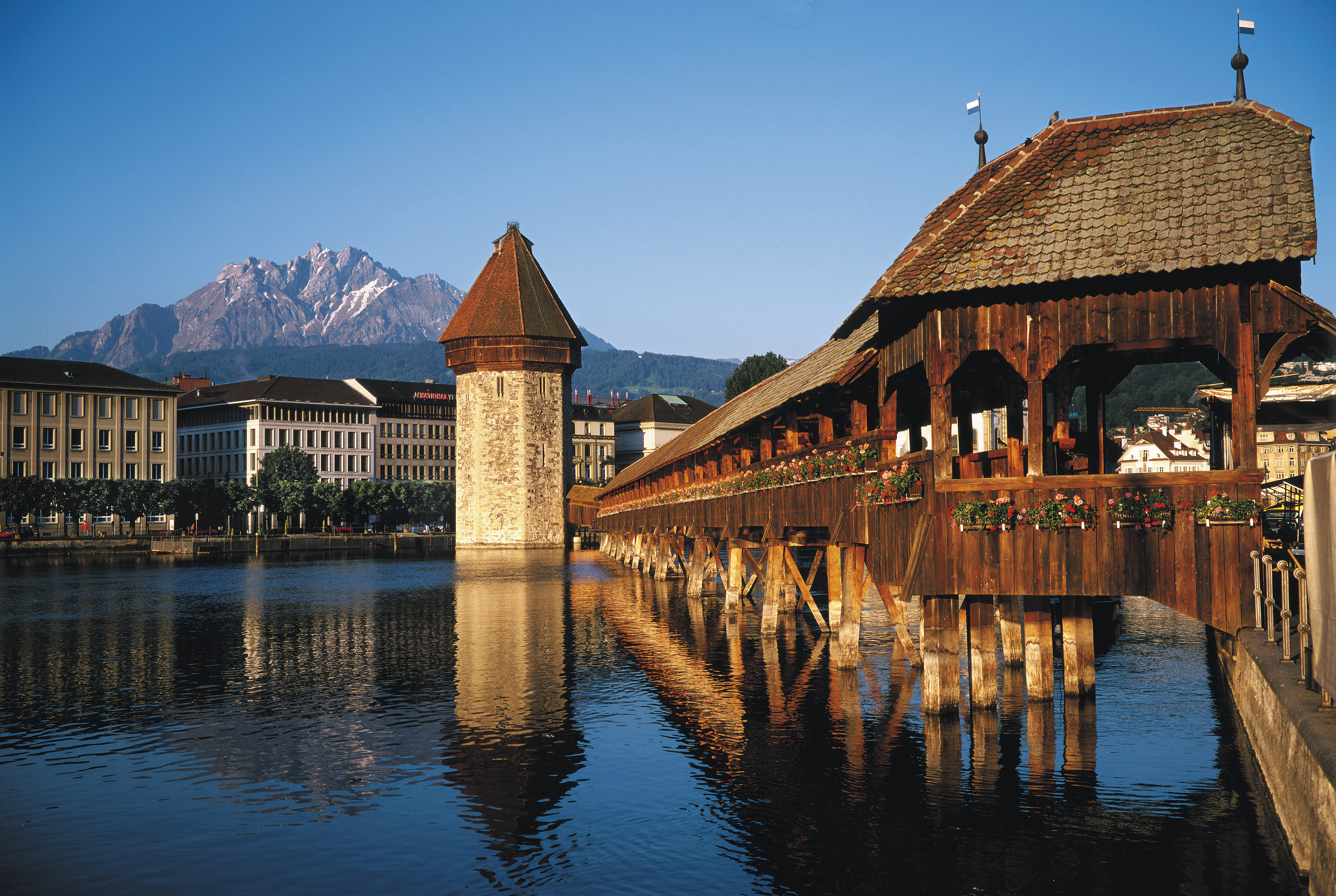 又名教堂橋,是琉森的著名地標,長204米的木結構廊橋跨越羅伊斯河。於1993年因撞船意外而被火災所燒毀,事後很快被重建並回復原貌。
