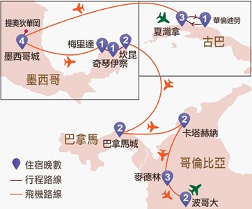 古巴:夏灣拿、奔納里奧、溫尼斯山谷、柯西瑪、華倫迪勞 | 巴拿馬︰巴拿馬城