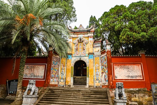 甲秀樓: 貴陽市市徽,共有三重,綠瓦紅楹、飛簷刻桷。明朝萬曆二十五年,貴州省巡撫江東之為鼓勵秀才上進之心,修建這座具有民族特色古樓,取「科甲挺秀」之意。