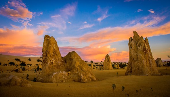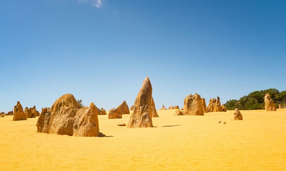西澳的標誌性景點,石陣中的石柱由貝殼經歷數百萬年侵蝕及堆砌而成,數以千計的巨大石灰柱矗立於萬裡黃沙之中,形成沙漠奇觀。