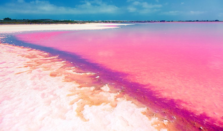 位於西澳洲的中西部海岸,是世界上為數不多的粉紅湖之一。這片湖泊因其獨特的粉紅色調而聞名,隨著季節、天氣和時間的變化而改變,從淡粉到深紅不等,吸引了來自世界各地的遊客。湖水的粉紅色源於湖中生長的特殊藻類,這些藻類產生β-胡蘿蔔素,使湖水呈現出迷人的粉紅色。