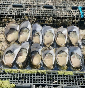 生長在布默灣 (Boomer Bay) 的藍湖生蠔,具有獨特、新鮮和鹹味,由塔斯曼半島唯一的生蠔養殖場出產。黃金太平洋蠔是更優質的生蠔品種,具有金色外殼的出眾外觀。牠生長得比較慢,卻能生出深杯狀金色外殼、更圓潤、更大的肉。