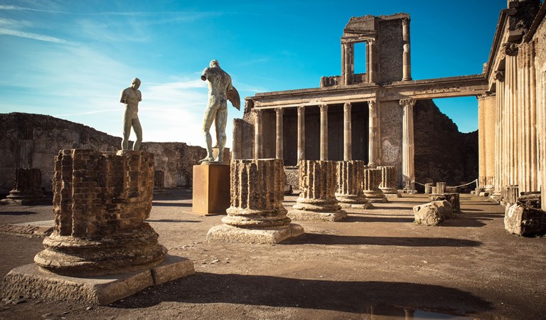 古城於公元79年因維蘇威火山爆發,被火山灰覆蓋掩埋。直到1748年才被挖掘出來,遺址的最動人心魄之處在於它真實地保留著災難來臨前龐貝人的樣子! 遺跡中包括神殿、市集和宮殿,被譽為「天然的歷史博物館」。於1997年被列為世界遺產。