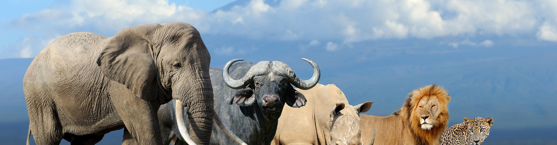 是非洲野生動物的代表性象徵,最初是由獵人用來描述在非洲大草原上最難獵捕且最具挑戰性的五種大型哺乳動物。如今,這五種動物被視為觀賞野生動物的標誌性物種。
