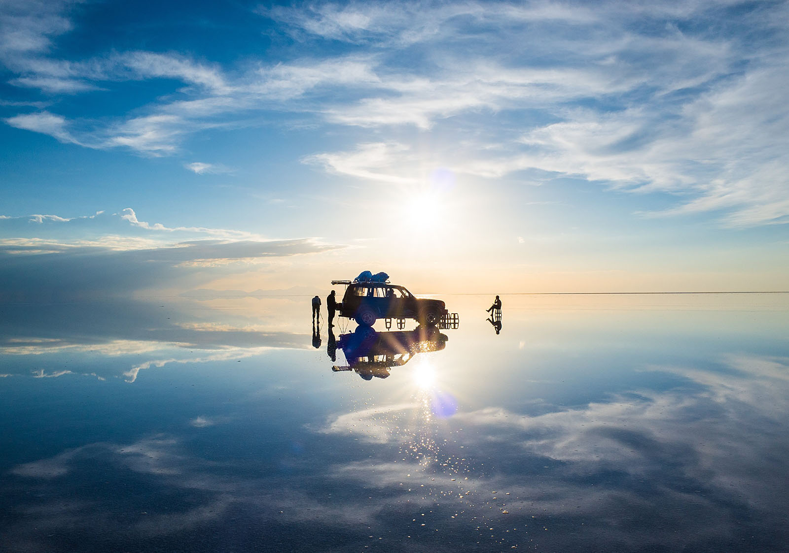 是世界最大的鹽湖,面積達10,582平方公里,位於海拔3,700公尺的山區,本是一片荒漠之地,以前只有採鹽者才到,後來卻因一個個鹽堆形成獨特風景,還有雨後地上積水倒映天空的奇妙畫面,吸引世人的目光,逐成為遊客首選的人間天堂。玻利維亞是南美最貧窮落後的國家之一,卻因為一面「天空之鏡」成為全球人心目中的聖地。