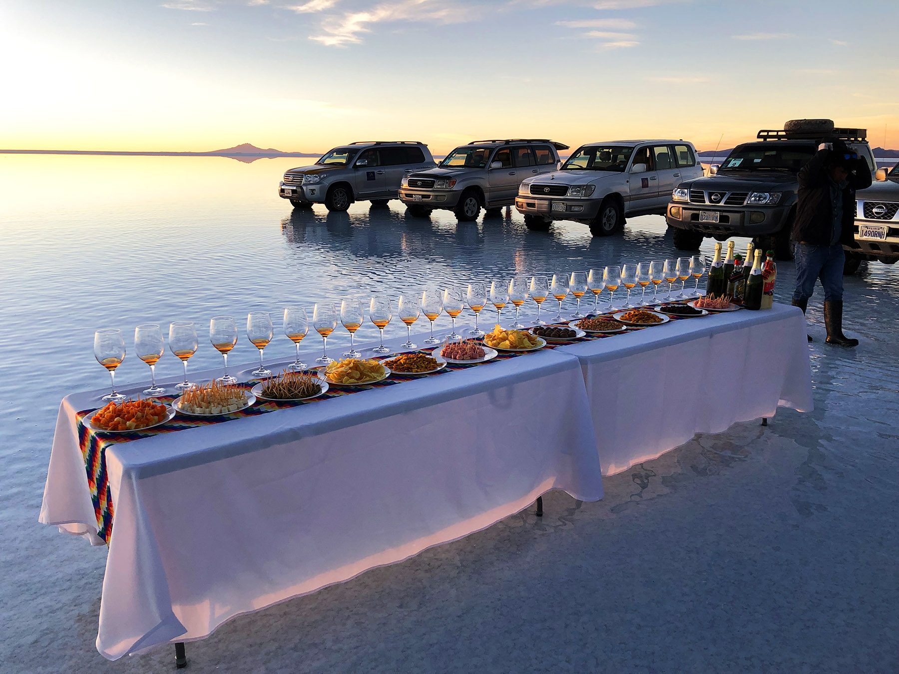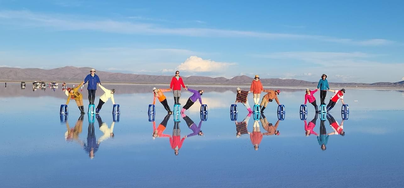 世界上最大的鹽湖。雨季時,大片的鹽晶體於雨後產生反射,平靜的湖面反射著天空景色,呈現出如天地合一的倒影,就是聞名的「天空之鏡」。如天氣情況許可,安排於鹽湖觀賞日落美景及晚上觀星。(天空之鏡是天然現象,如因天氣情況第24天無法觀賞,將於第25天早上補回。若最終未能觀賞,本公司將不作任何補償。)