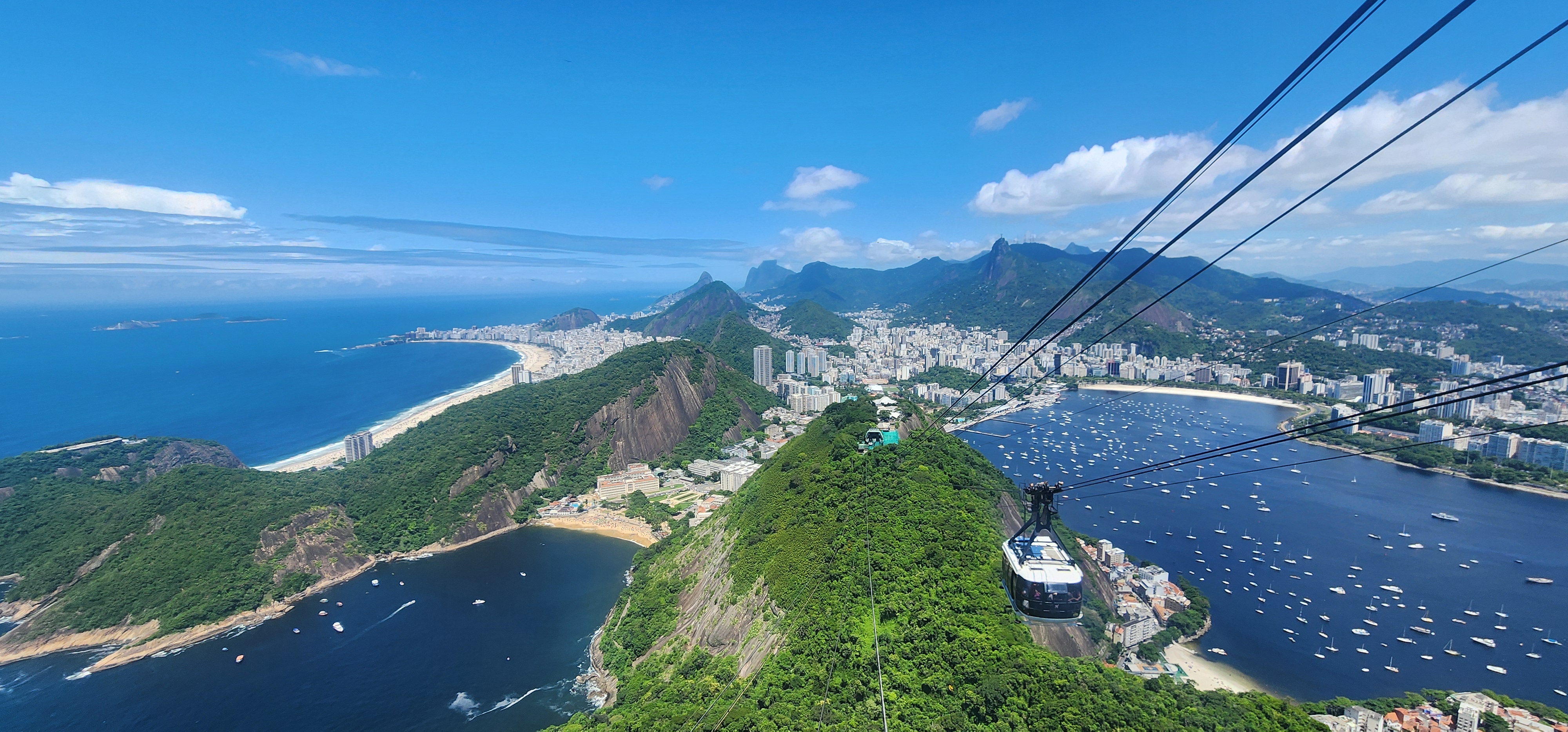 聳立在里約熱內盧市內,高度395公尺,屬花崗岩結構。乘登山吊車登上山頂,飽覽里約市迷人風光及著名Copacabana海岸。