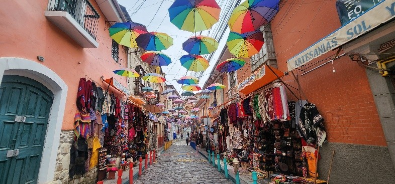 大大小小的攤位和沿街的小店舖裡販賣各種各種各樣的巫術及祈福用具的街頭市場,可見售賣駱馬胚胎,據說是當建新屋時埋在地下辟邪用,還有地道手工藝品小商店。
