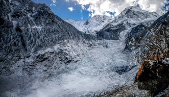由四座相連山峰組成,主峰麼妹峰海拔6250米,暢遊精華景區雙橋溝