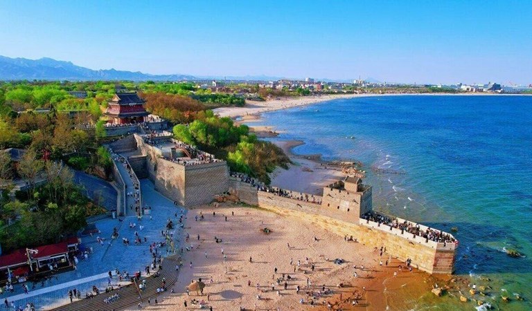 老龍頭: 是明長城的東部入海處,也是長城唯一一處集山、海、關、城於一體的海陸軍事實防禦體系,被譽為“長城之首”。因其形似巨龍的龍頭伸入海中,故名“老龍頭”。
