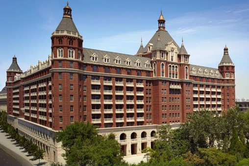 地處天津中央商務區核心地帶,鄰近海河,周圍遍佈19世紀和20世紀的歐洲風格建築,體現天津豐富的歷史文化底蘊。採用新古典主義建築風格,融合現代設計項目,客房寬敞典雅,設施先進。