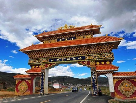 尊勝塔林: 為廿孜州最大的白塔,周圍排列四層小白塔,共108座小白塔。基座安放轉經筒,供藏民虔誠膜拜。