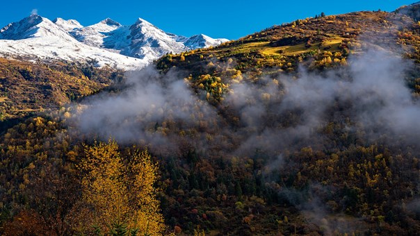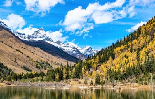- 特色: 雙橋溝的雪山、秋林、湖泊,層林盡染。