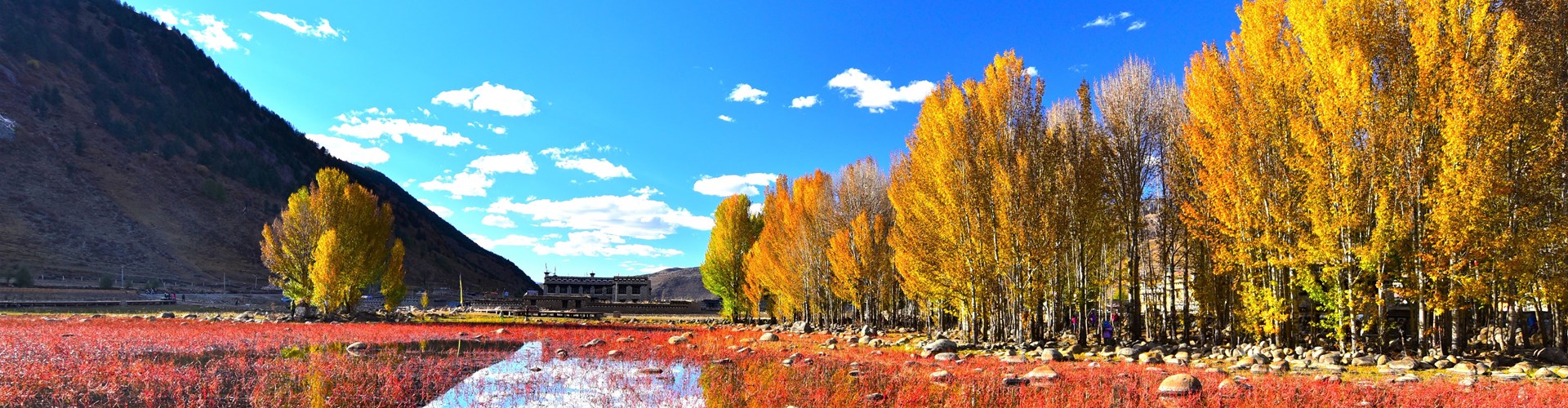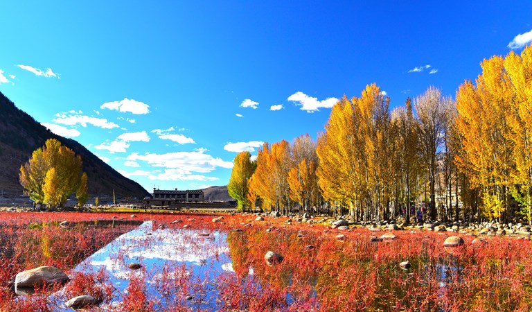 - 特色: 「攝影家天堂」,光影下的楊樹林、藏式民居、蜿蜒河流。