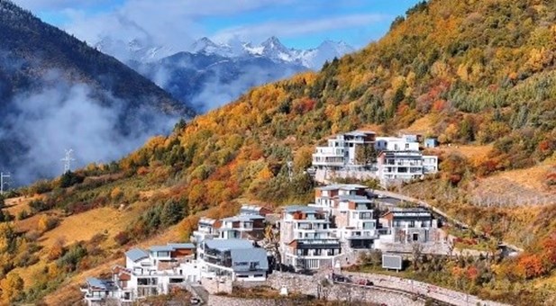 毗鄰最年輕冰川—達古冰川,處於亞洲天然彩林區的核心位置。由山上的老房子改造成為煥然一新的嘎爾莊園;古寨風貌上改造修葺的高端藏式院落,將古典與時尚融為一體,讓人耳目一新。