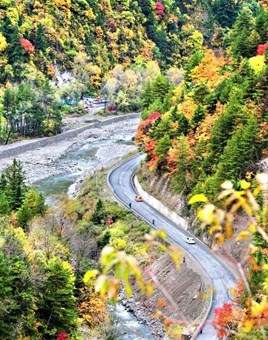 - 特色: 80里彩林畫廊,羊茸哈德藏寨藏寨點綴其間、達古冰川秋雪同框。