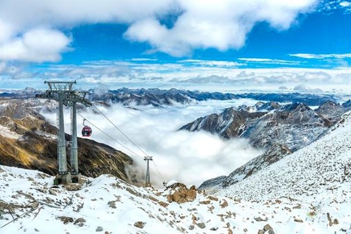 達古冰川: 這裡擁有冰川、雪山、湖泊、藏寨和原始森林,被譽為「川西小瑞士」。乘世界第一高海拔纜車往返海拔約4860米冰川觀景台,15分鐘穿越四季。秋季彩林和冰川同框,是著名的攝影天堂。