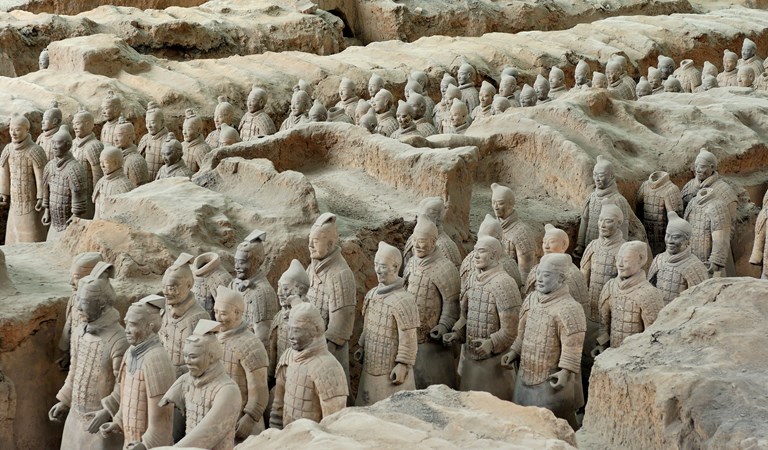 秦始皇兵馬俑: 以其巨大的規模,威武的場面,和高超的科學、藝術水準,被譽為「世界第八大奇蹟」,是當代最重要的考古發現之一。