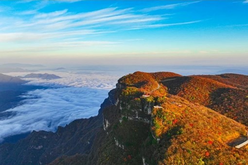 光霧山: 位於四川省巴中市,地處川陝交界處,是中國國家5A級景區,以紅葉、峰林、雲霧聞名,紅葉面積達680平方公里,被譽為「中國紅葉第一山」。