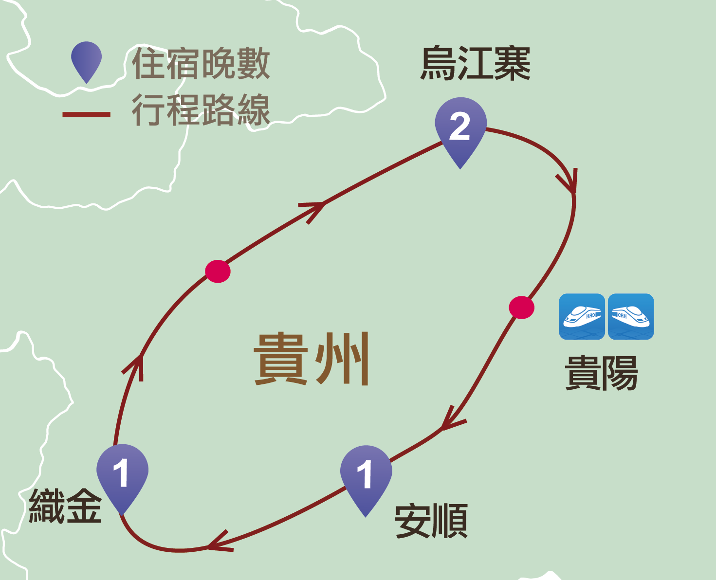 暢遊:貴陽、安順(黃果樹瀑布)、花江峽谷大橋、畢節(百里杜鵑)、織金、烏江寨、湄潭