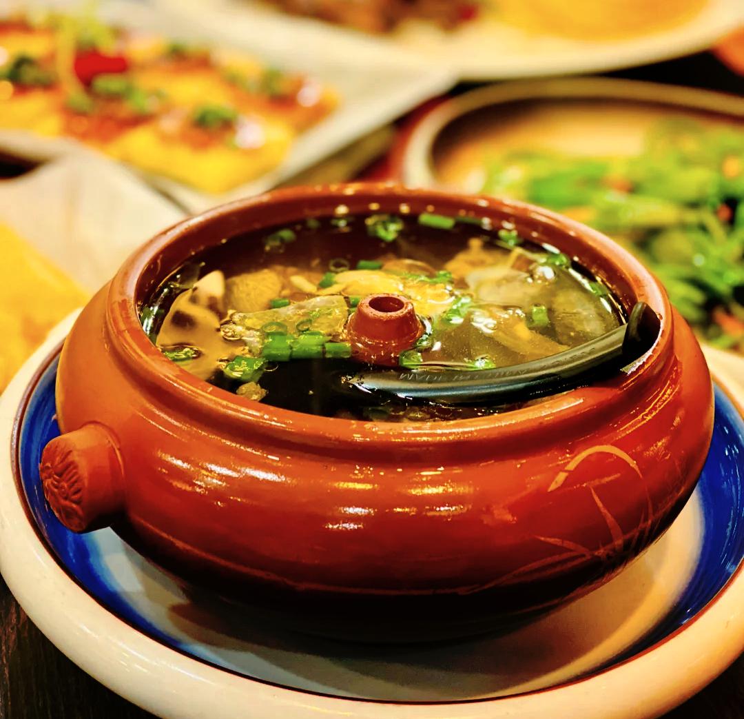 源自西安華山腳下,採用獨特的傳統汽鍋烹調工藝,其特色為選用當地優質土雞,搭配中草藥材,以蒸汽緩慢燜蒸而成,完美鎖住雞肉鮮嫩與湯汁精華,肉湯鮮美、營養豐富,充分展現了華山地區的純淨自然風味與烹飪技術。