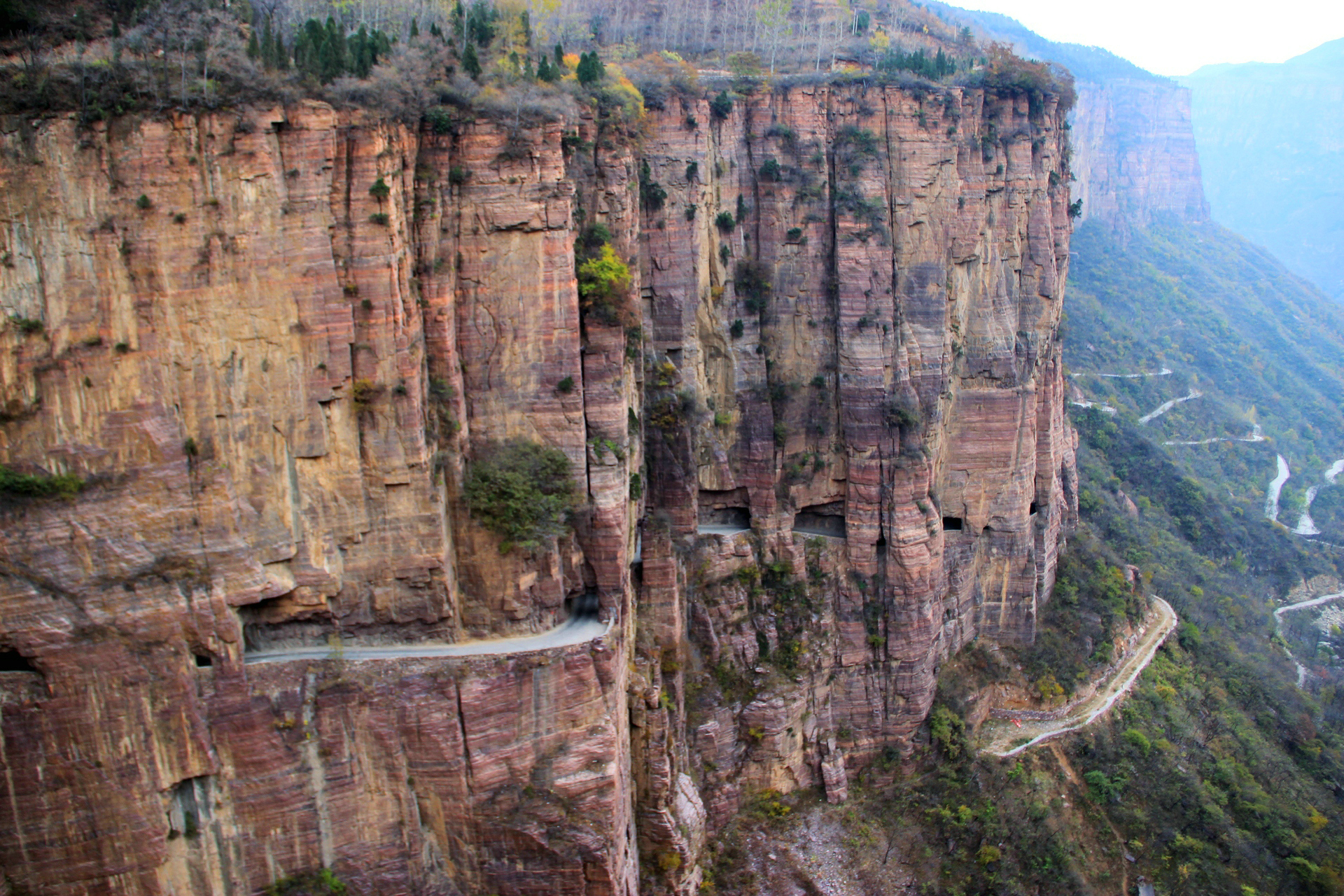 絕壁長廊: 全長1200米,是1970年代村民靠鋼釺鐵鎚在懸崖上開鑿出的奇蹟道路,是南太行第一個橫穿絕壁的隧道,號稱「太行隧道之父」。