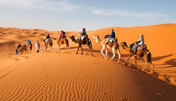 撒哈拉沙漠日出之旅:騎駱駝漫遊於沙漠,觀賞沙漠日出美景。(客人也可選擇漫步沙漠)欣賞令人屏息的沙漠日出,是最動人難忘的自然美景之一。