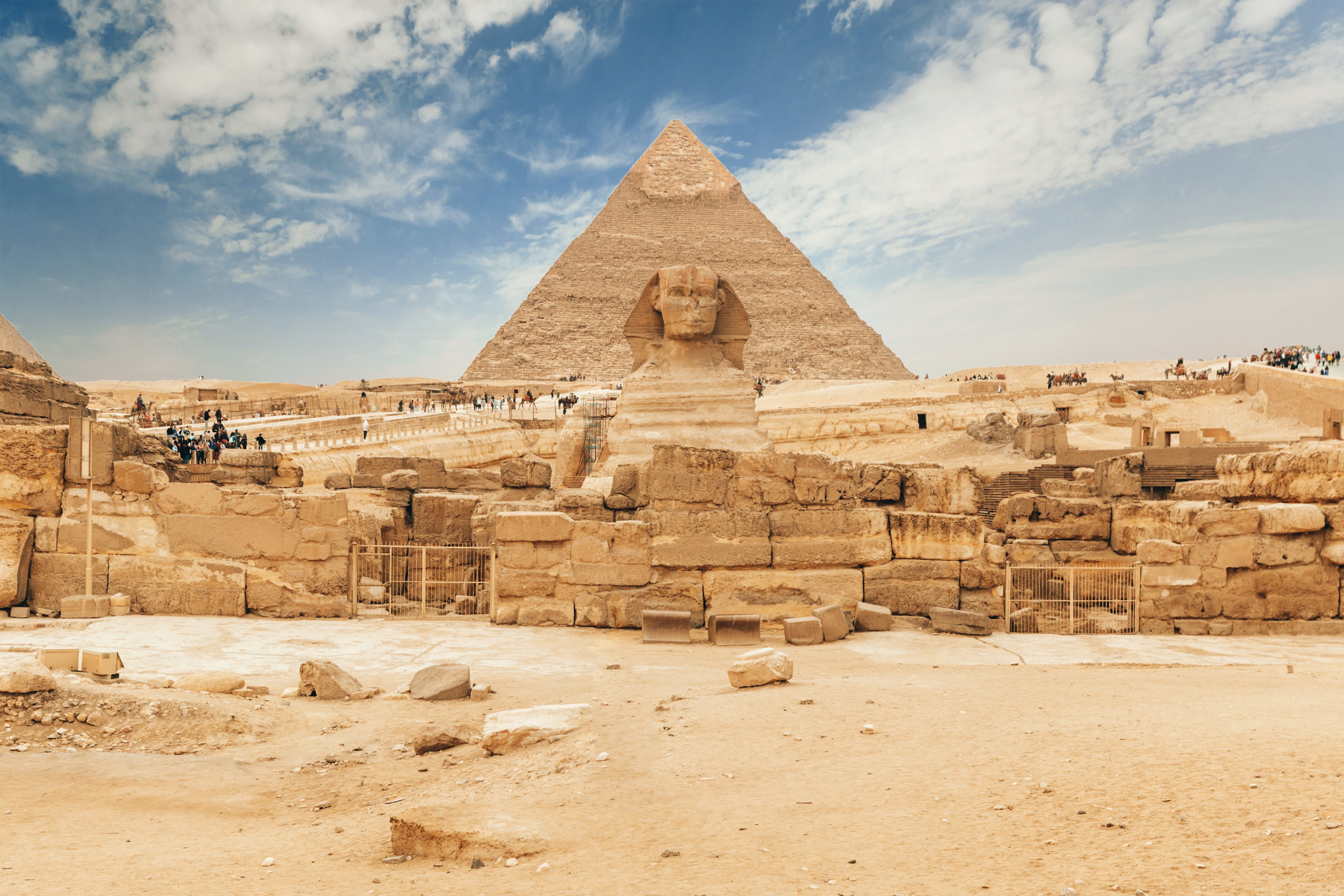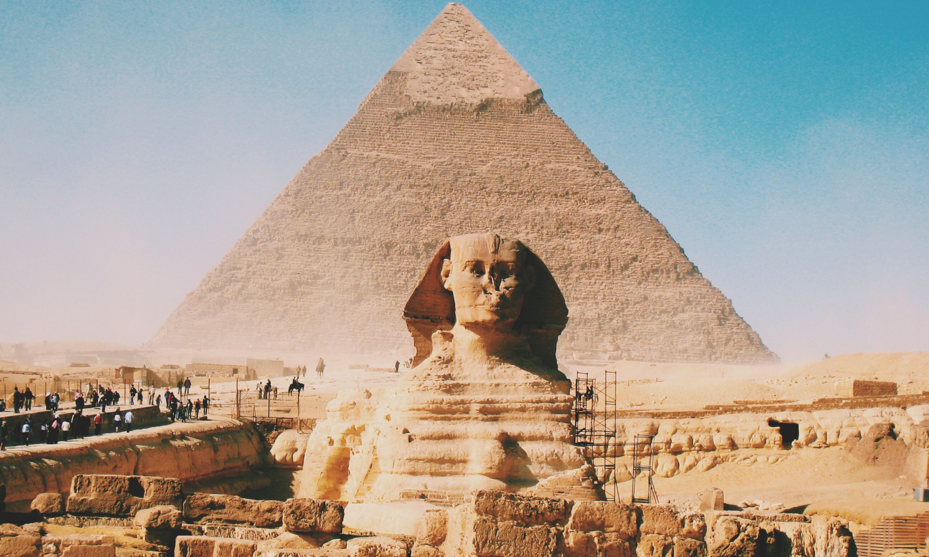 獅身人面像︰位於吉薩金字塔群旁邊,亦是世上最著名雕像之一。儘管如此,這個雕像仍存在許多個不解之謎。