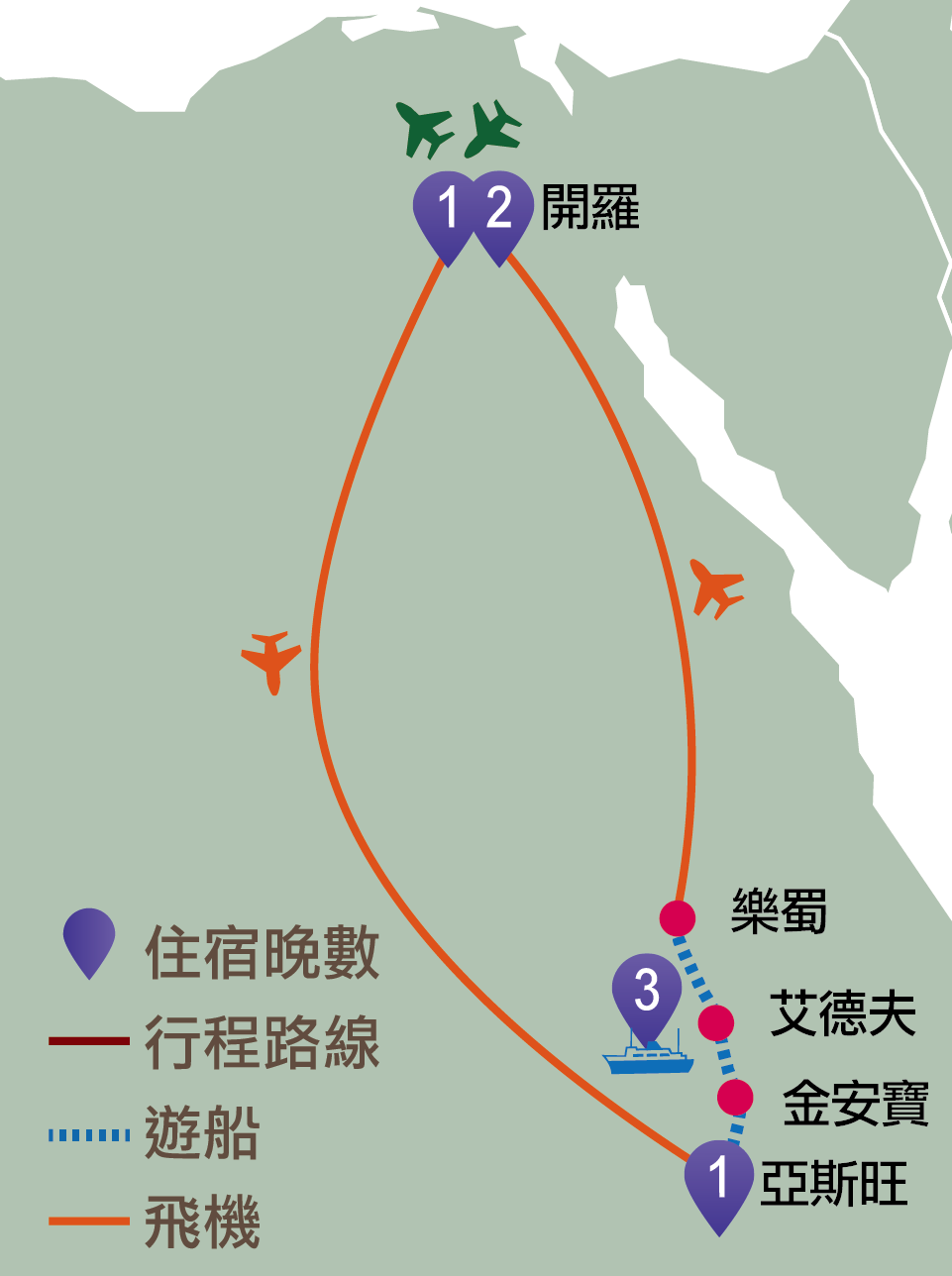開羅、亞斯旺、金安寶、艾德夫、樂蜀