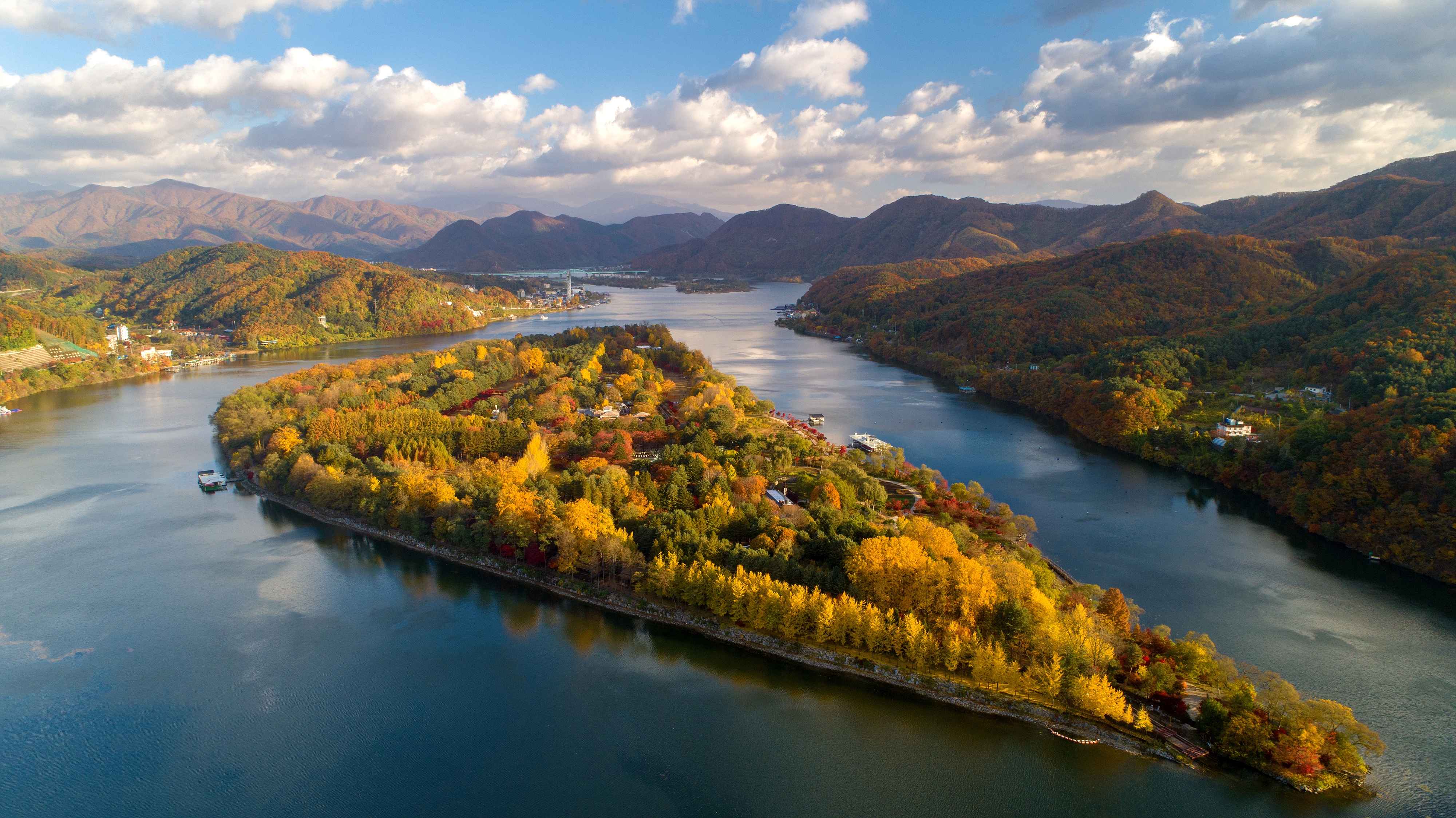 南怡島: 位於北漢江上游,面積約14萬坪。四季皆美,尤其在秋天,島上被紅葉和金黃色的銀杏樹葉覆蓋,呈現出壯麗的景象。