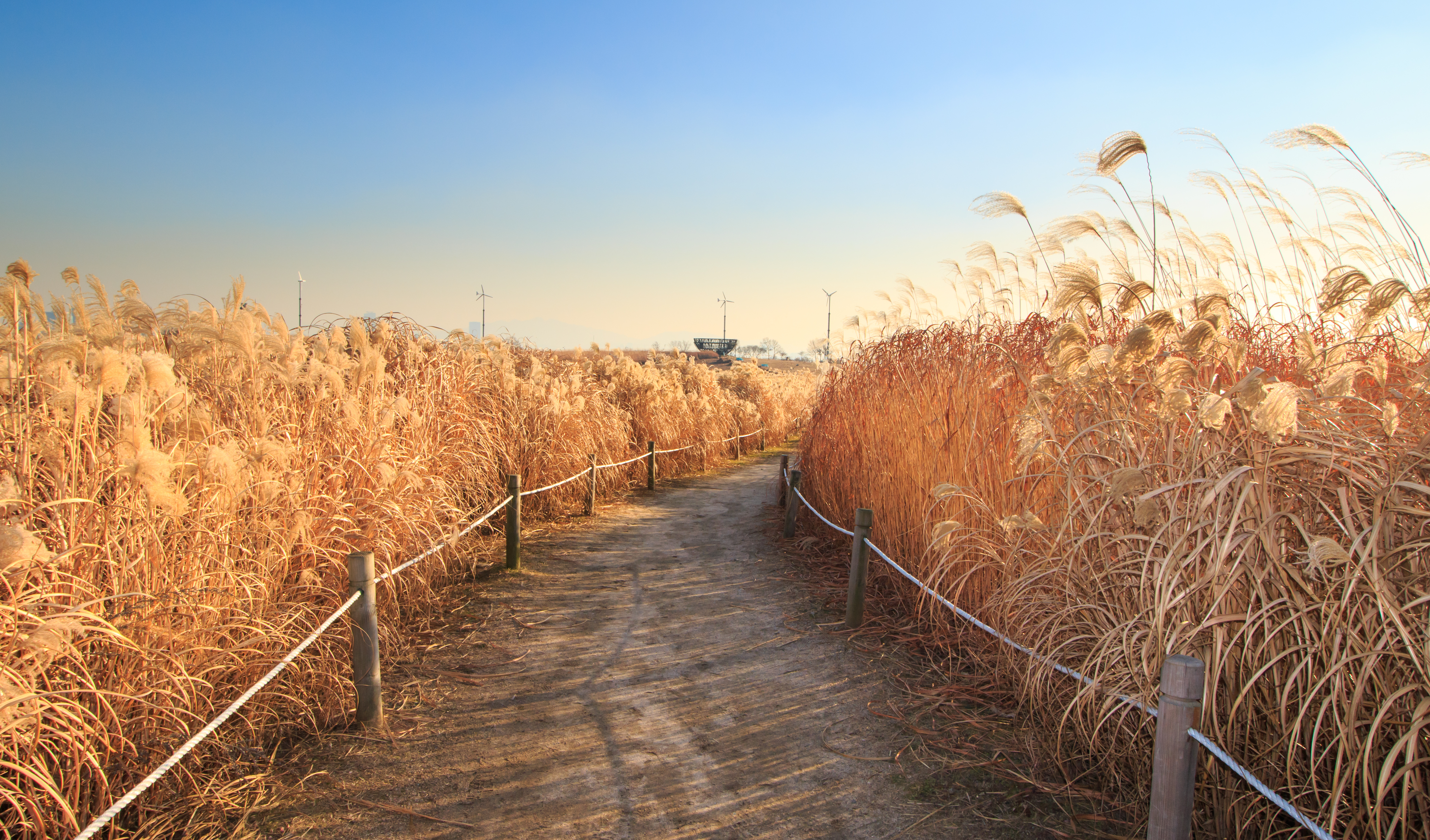 天空公園: 為紀念2000年第17屆世界杯足球賽而建立,除了廣闊的芒草之外,最熱門的就是季節限定的粉紅色亂子草。