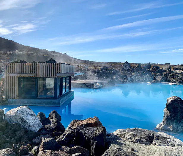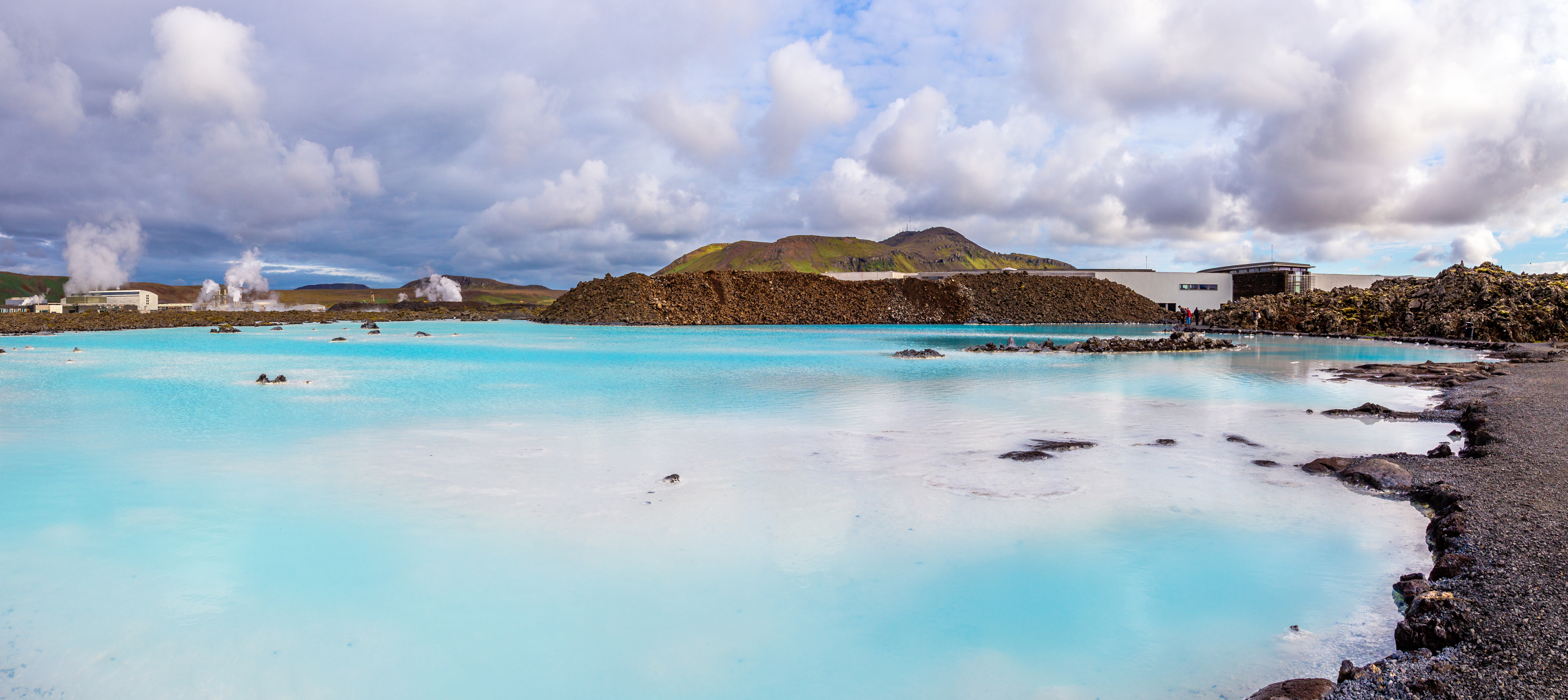 藍湖溫泉:冰島著名地熱溫泉。附近發電廠將發電後的熱水排出至低窪的火山岩地,熱水溶解岩層裡的礦物質,形成煙霧嬝嬝的藍色溫泉水。湖水溫度介於攝氏 37~39 度之間,含礦物質,具有護膚功效,是個溫泉天堂。