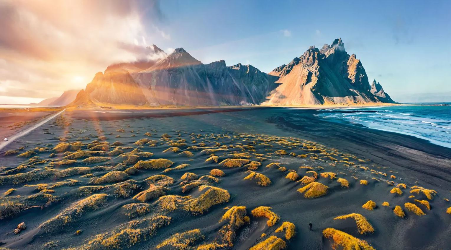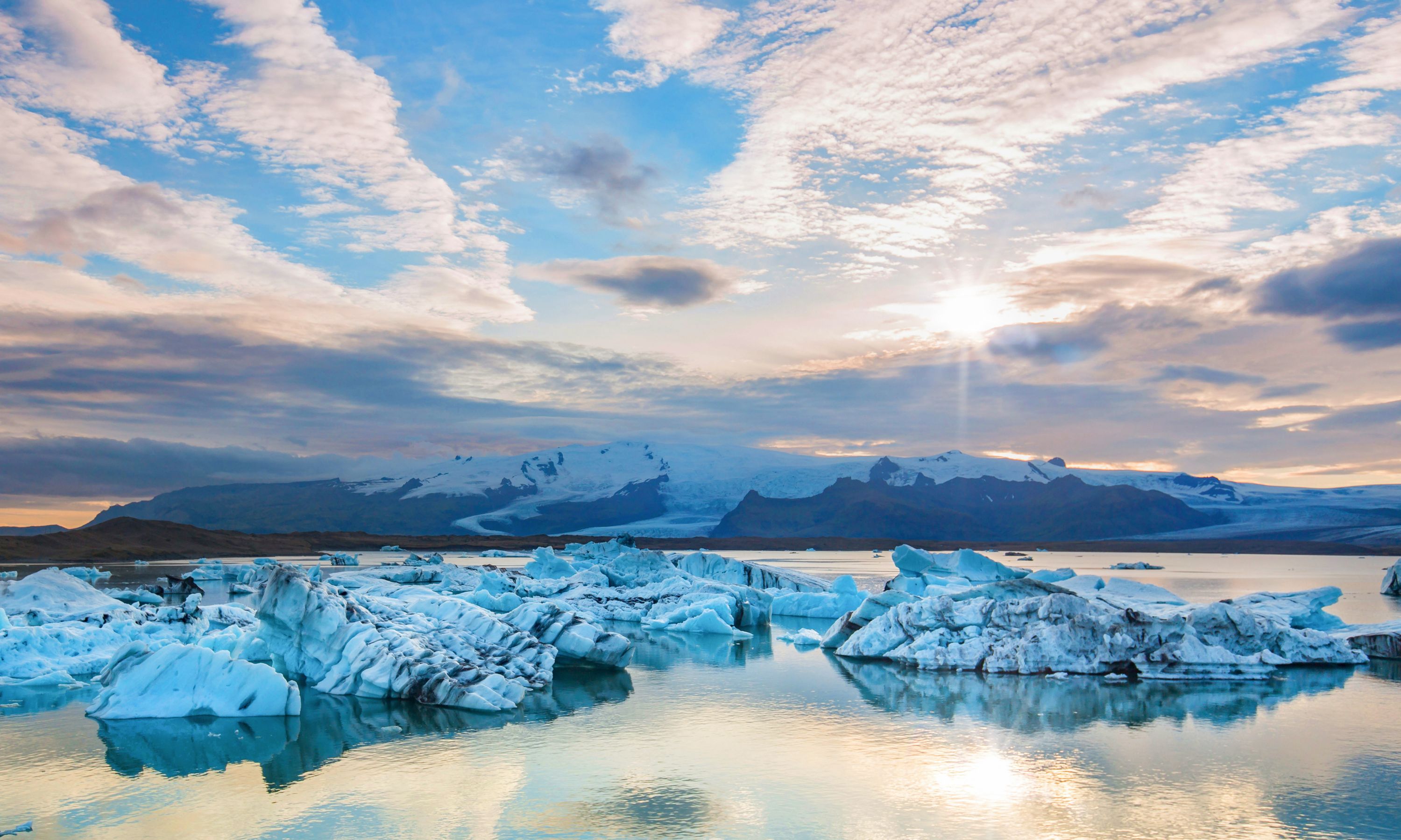 傑古沙龍冰河湖:位冰河湖位於冰島最大的瓦特納冰川國家公園內是天然形成的冰瀉湖。在冰河湖內的浮冰顏色主要是雪白色,也有部分保留了冰藍色,也有被火山灰沾染到的部分則會呈現黑灰色。隨著全球暖化,冰原也日漸融化,前端部分形成了冰河湖。雪白山峰和岸邊黑色的沙岩形成強烈對比;湖中漂浮的冰雪在日光折射下,散發出冰藍的光芒。