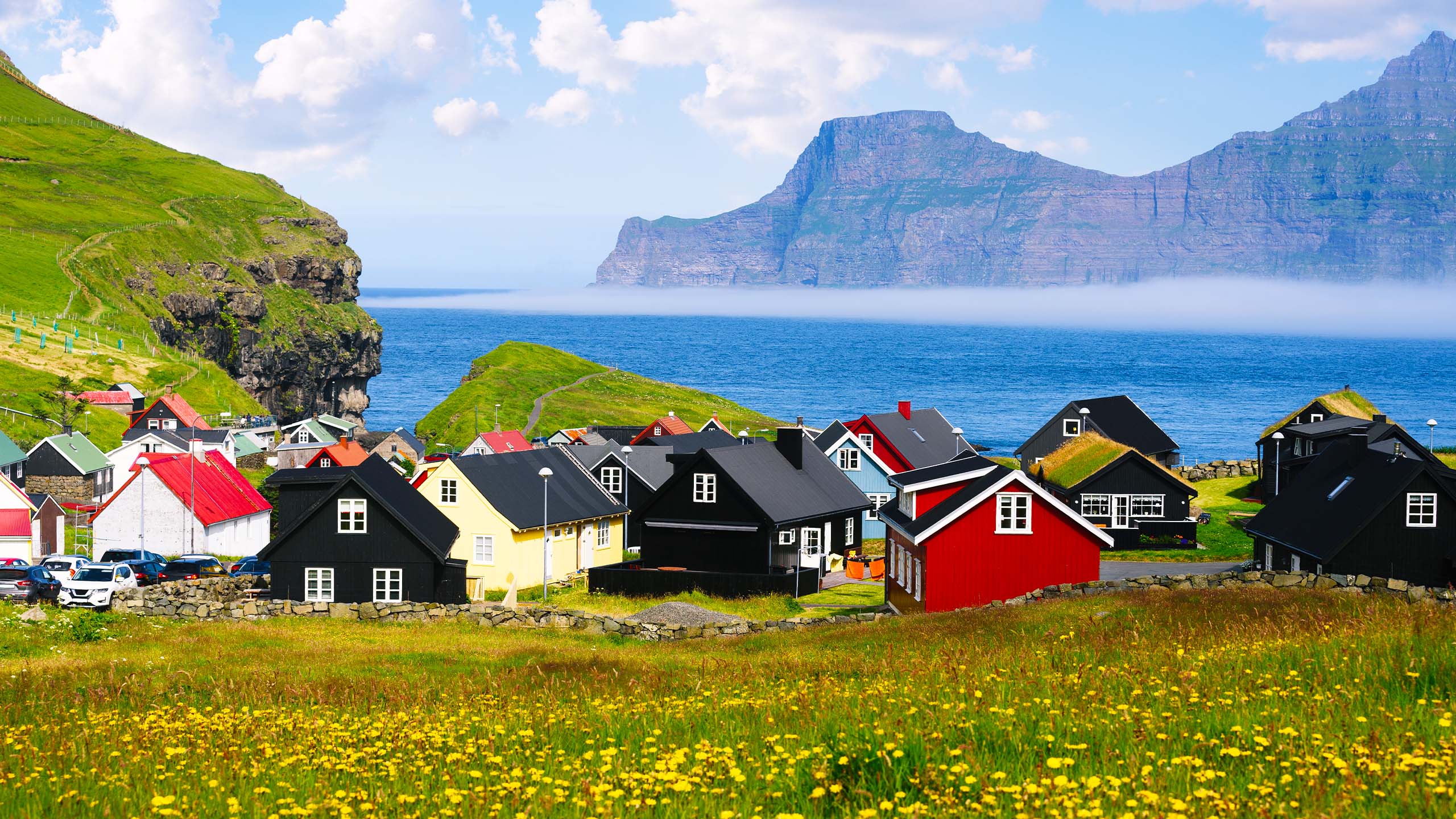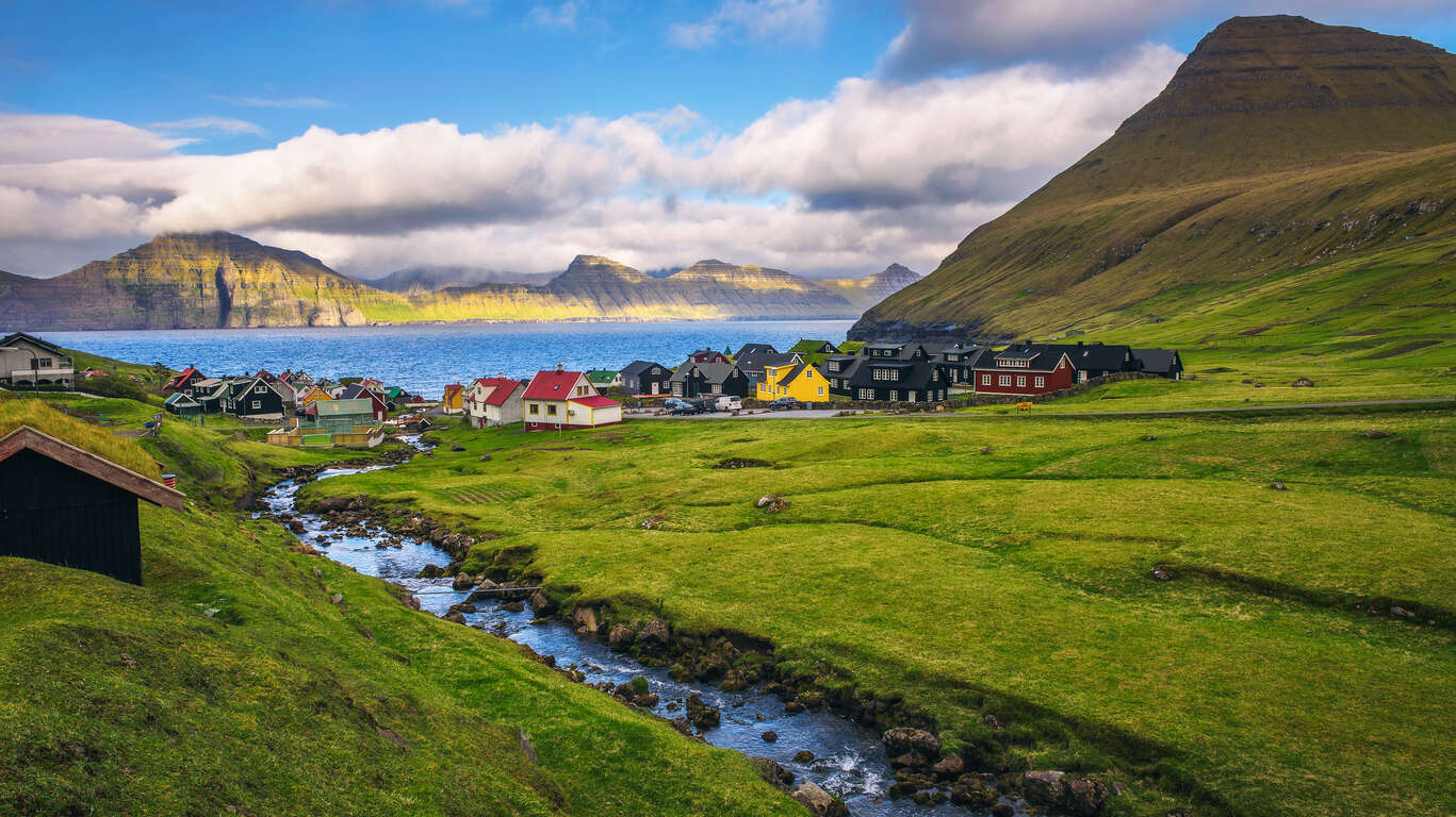 被喻為法羅群島最美麗的三條古老村落,古老的草皮屋頂教堂和草皮小屋被陡峭山脈包圍的潟湖美景。