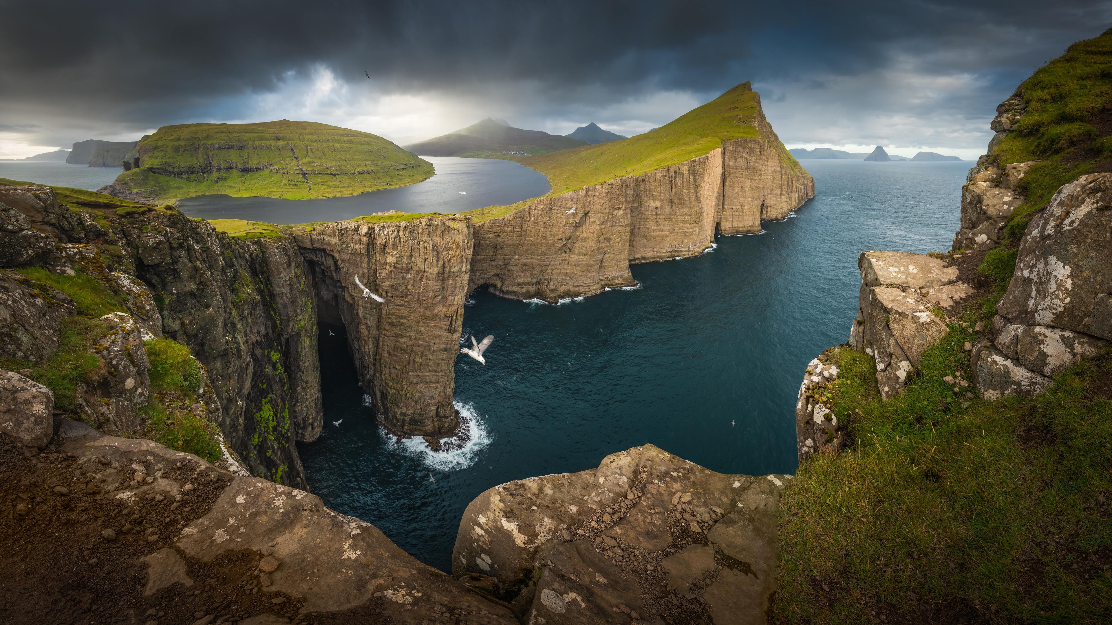 是法羅群島最標誌性的景點,運氣好的話還可以看見彩虹。位於懸崖邊的瀑布,周圍是壯麗的山脈和海洋景色,瀑布的落差超過30米。