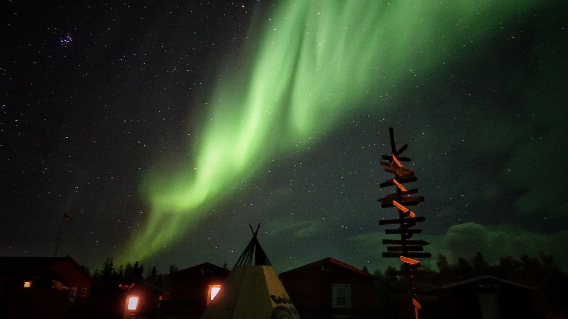 - 黃刀鎮是世界上唯一每年能有250/次機會觀賞北極光,世界上唯一的極光追蹤天文台也設置在這裡!堪稱「北極光首都」。