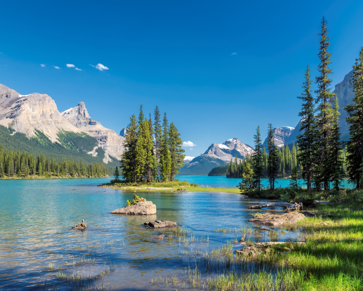瑪琳湖是在上一個冰河世紀形成的天然湖,是世界第二大,也是洛磯山國家公園中最大的冰河湖。位於湖泊中段的精靈島,是整個湖景的精華所在。