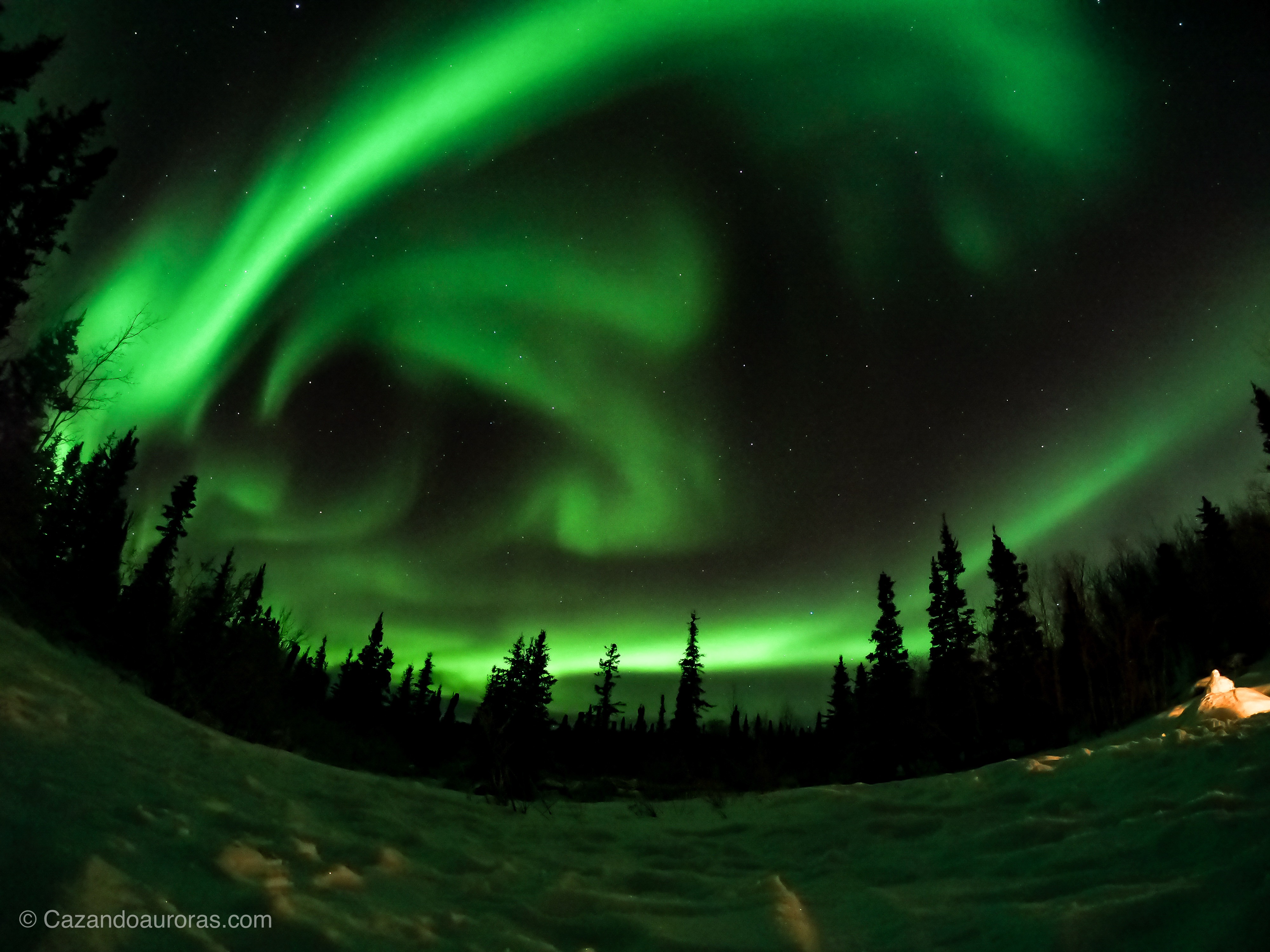 位於極光圓環(Aurora Oval)熾亮點之下;極光圓環出現在北緯60到70度,最熾亮的位置為64度,而黃刀則位於北緯62.3度,地理位置得天獨厚。而黃刀鎮名字的由來,是因為當地富藏金礦、銅礦,原住民經常配戴黃銅刀而得名。