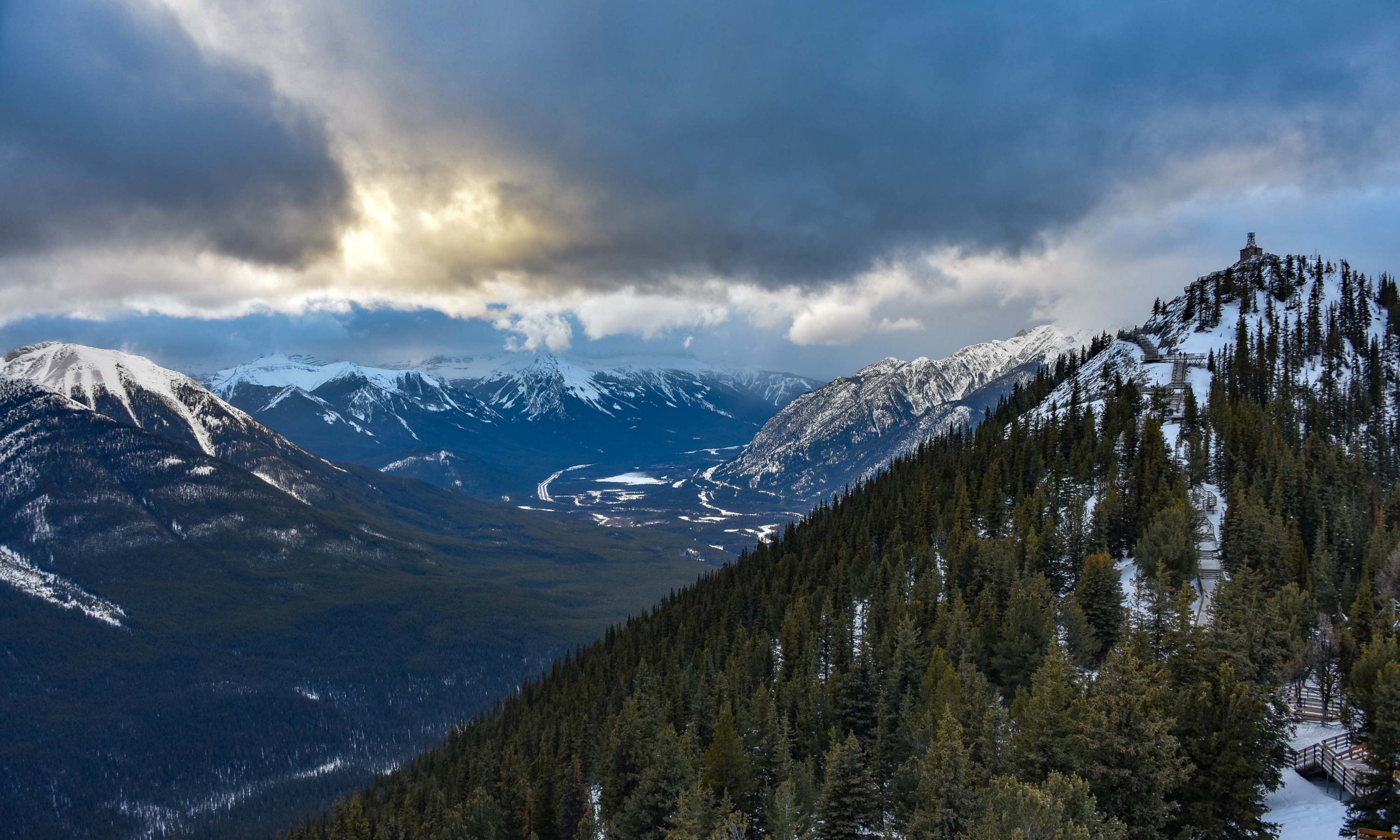搭乘硫磺山纜車,攀登海拔2,450公尺高的硫磺山山頂,隨著爬昇的纜車鳥瞰班芙美景,並在展望台上眺望令人屏息的風光。