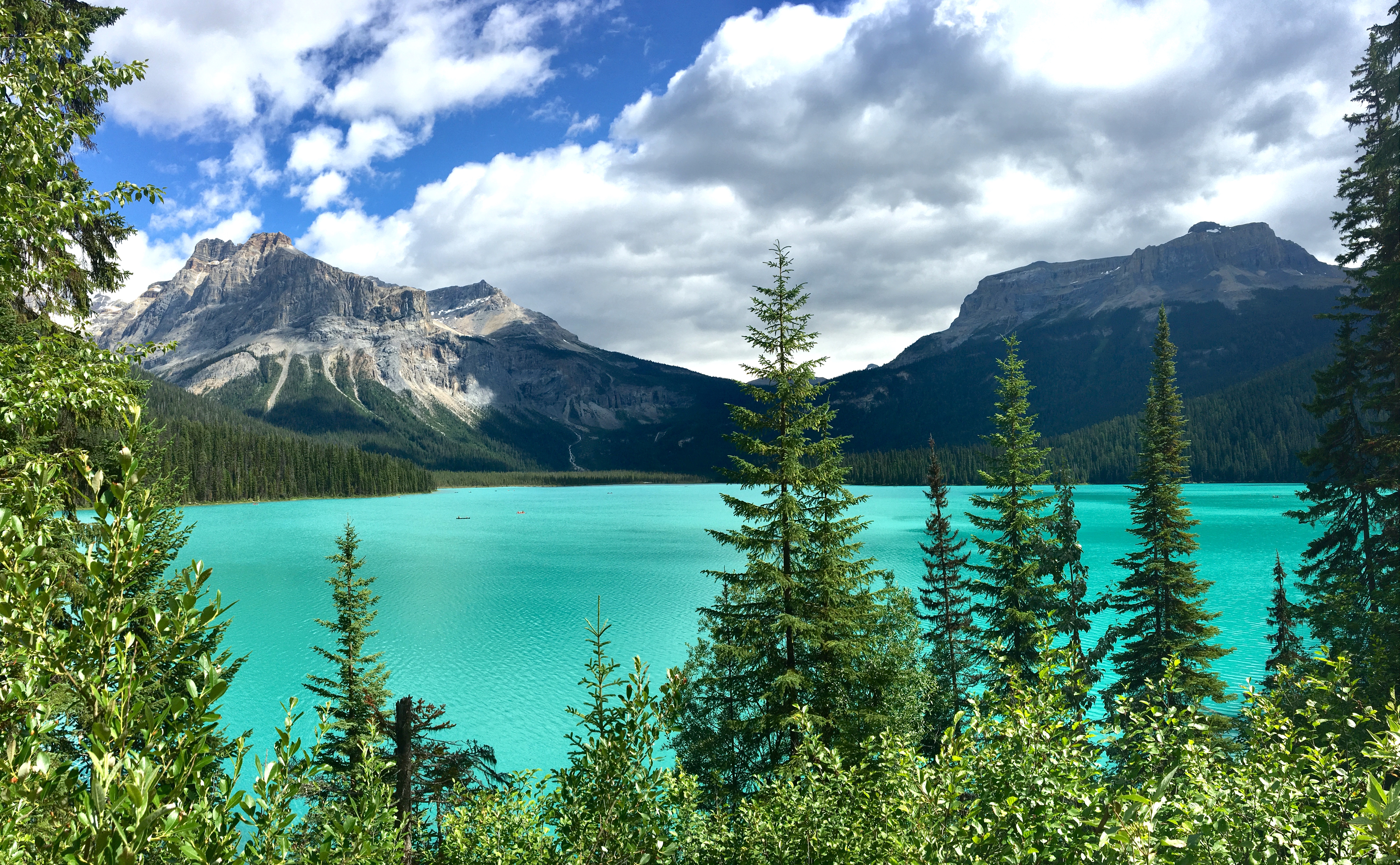 在班夫國家公園〈Banff〉與傑士伯國家公園〈Jasper〉之間的最值得觀光點就是哥倫比亞大冰原。至於露易絲湖則有著「洛磯山脈的藍寶石」之美譽,湖水源自冰川融雪,陽光下折射出沉靜的碧綠色,讓人著迷。