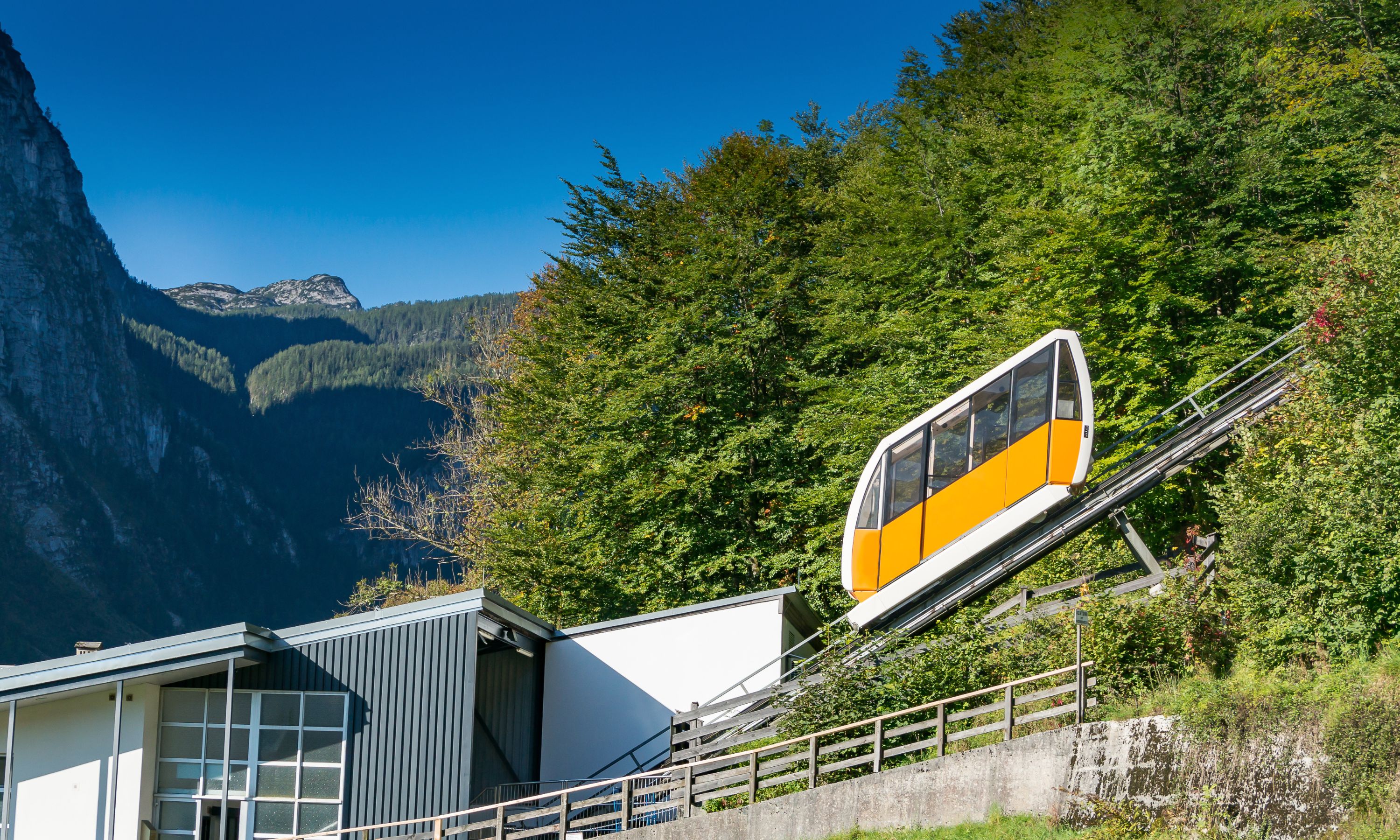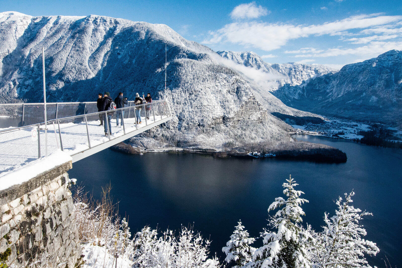 天空步道:乘纜車登上山頂,在平台上俯瞰整個哈爾施塔特的湖景風光,更可遠眺鄰近小鎮及山村