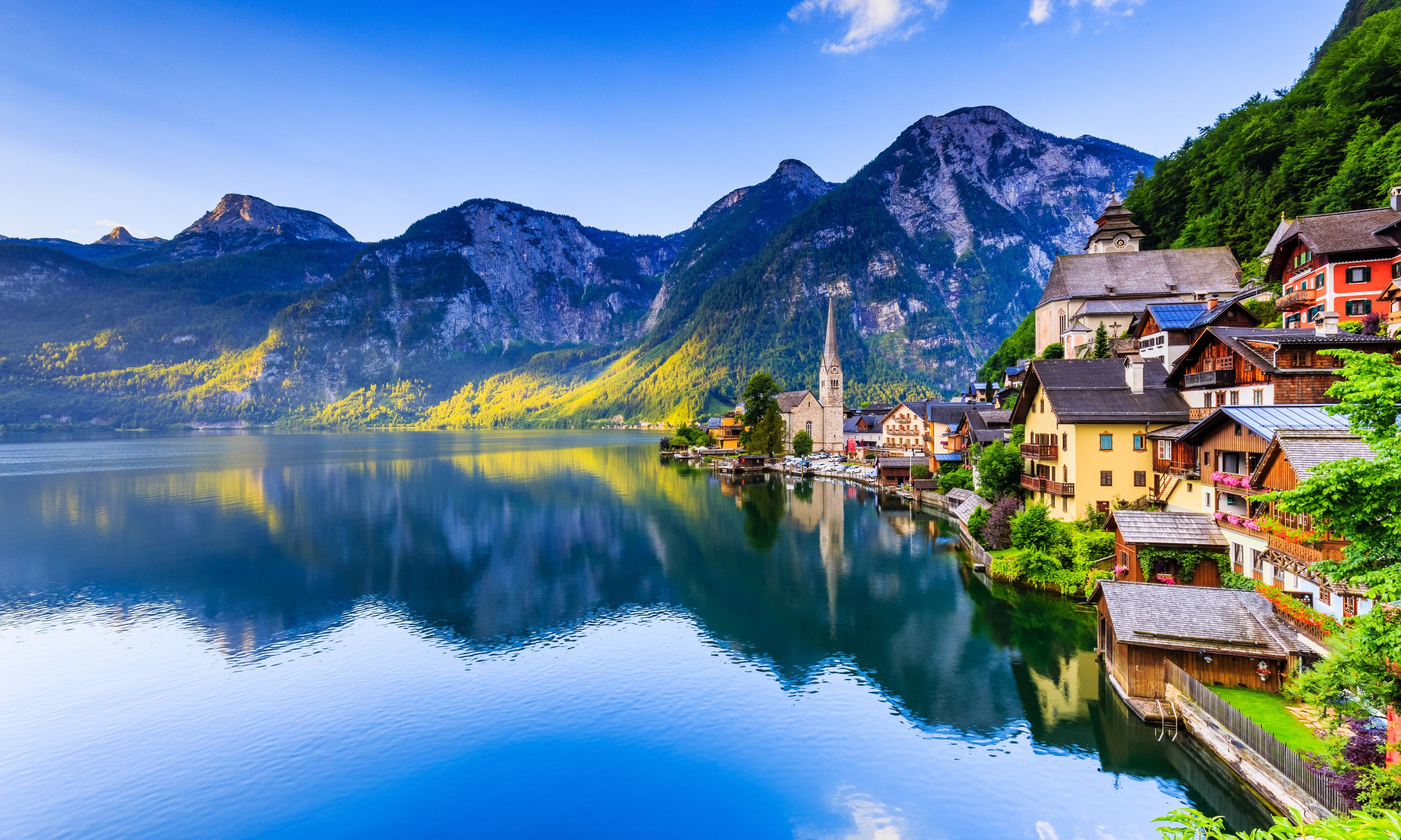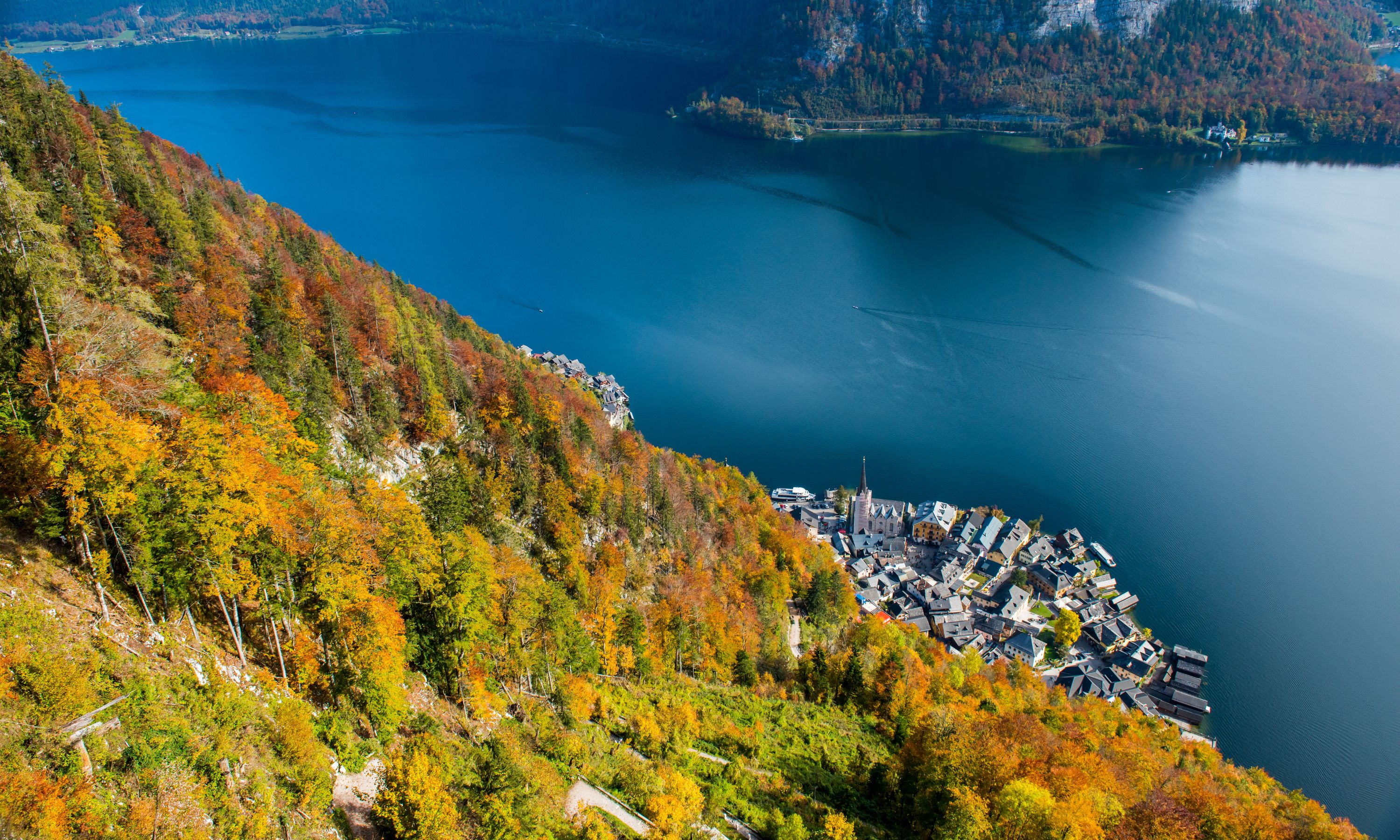 哈爾施塔特:古語中「Hall」指的是鹽、「Statt」則是德語中指的是小鎮,因鹽礦成就了城市的發展與繁榮。現在居民人數不到800人,加上沒有太多開發、小鎮保有非常原始的風景,1997 年列入世界遺產,每日大量遊客慕名而來,成為奧地利最著名的景區。安排乘觀光船漫遊哈爾施塔特湖。