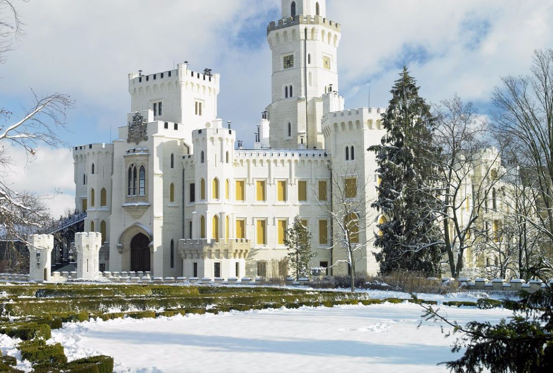 赫盧博卡城堡(琥珀卡城堡):被譽為捷克最美麗的城堡之一的琥珀卡城堡,又譯作胡波卡城堡或白鹿頭堡。以英國溫莎城堡為樣本所建造,屬於哥德復興式建築,坐落於小鎮高處,可以俯瞰一旁的伏爾塔瓦河。因雪白色的浪漫外觀,亦稱作「白色城堡」。史瓦森貝格家族為最後一任城堡的擁有者,但因為第二次世界大戰逃往美國後,就再也沒有回到捷克,因此改由捷克政府接手管理至今,並且同時開放參觀。城堡頂部有炮門垛口、景觀花園,內部有會客室、餐廳、藏書室、公爵夫人套房等等。城堡在每年夏末舉辦音樂節,演奏民族音樂和爵士樂、室內樂等。