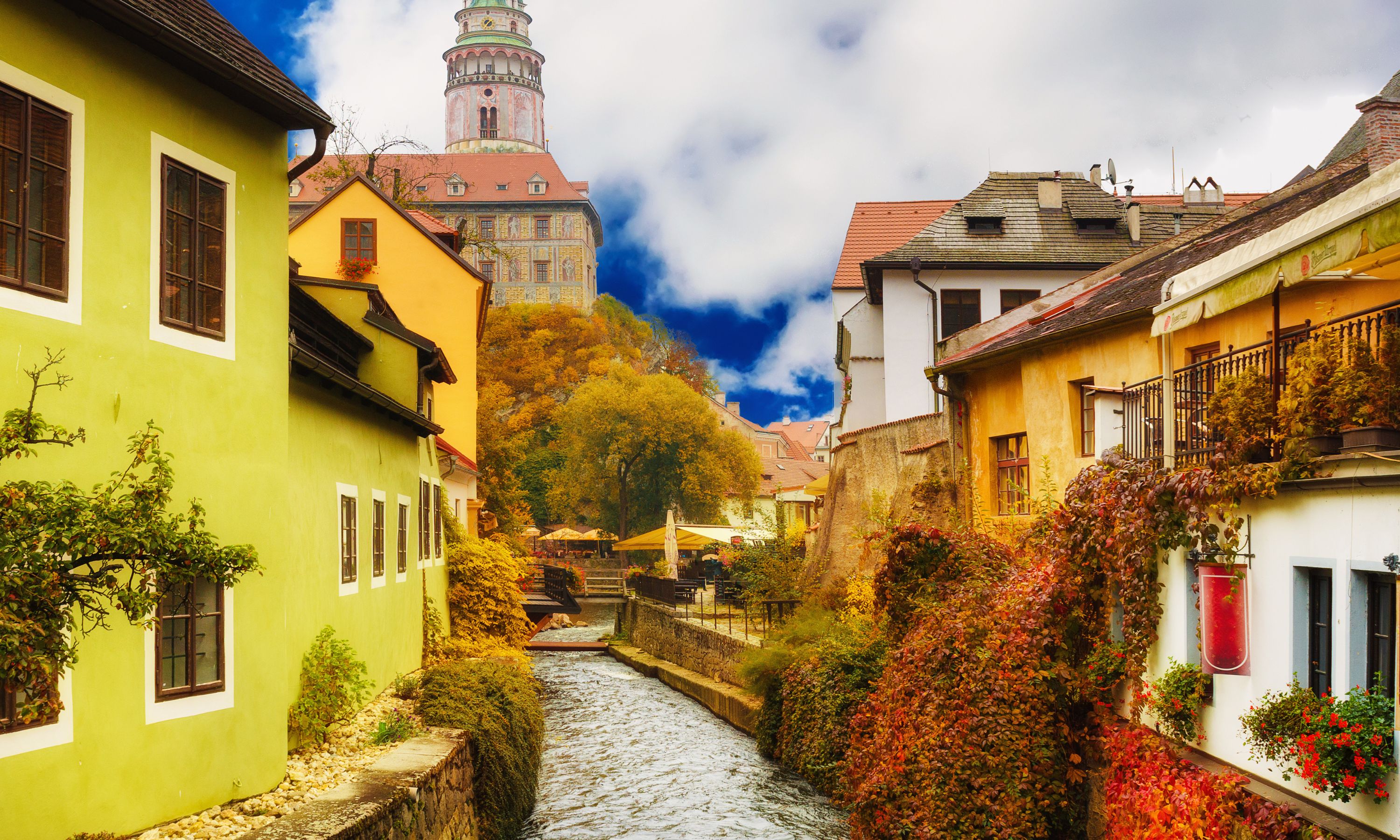 古姆洛夫:舊城區充滿中世紀古典優雅的情調,美得令人心醉。擁有逾三百多座歷史建築,蜿蜓曲折的伏爾塔瓦河穿梭其間,優美的弧型河道將古城一分為二,城堡區及舊城區相互輝映,登上高處俯瞰整個典雅古城。