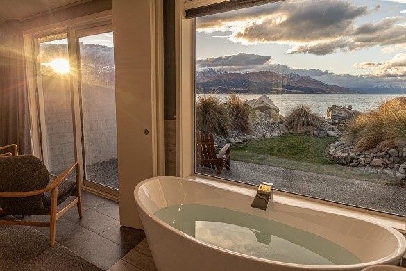 每個房間和浴室均可俯瞰普卡基湖及南阿爾卑斯山的壯麗景色。新西蘭最高峰庫克山的倒影映照在湖水的碧藍之中欣賞壯觀的自然演出。客人可以享受世界上最清澈的星空,因為它位於奧拉基麥肯齊國際暗天保護區的核心地帶。