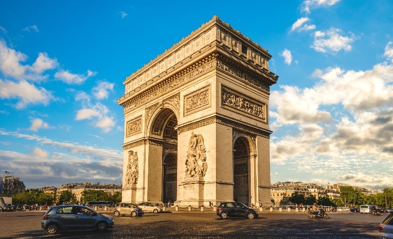 聳立在香榭麗舍大道上,是法國一代英雄拿破崙在大破西方諸國聯軍後,為表揚法軍功績而興建。